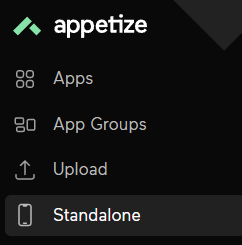 You can access your standalone device by logging in and then opening your [Standalone Page](https://appetize.io/standalone) or by selecting `Standalone` in the left-hand menu.